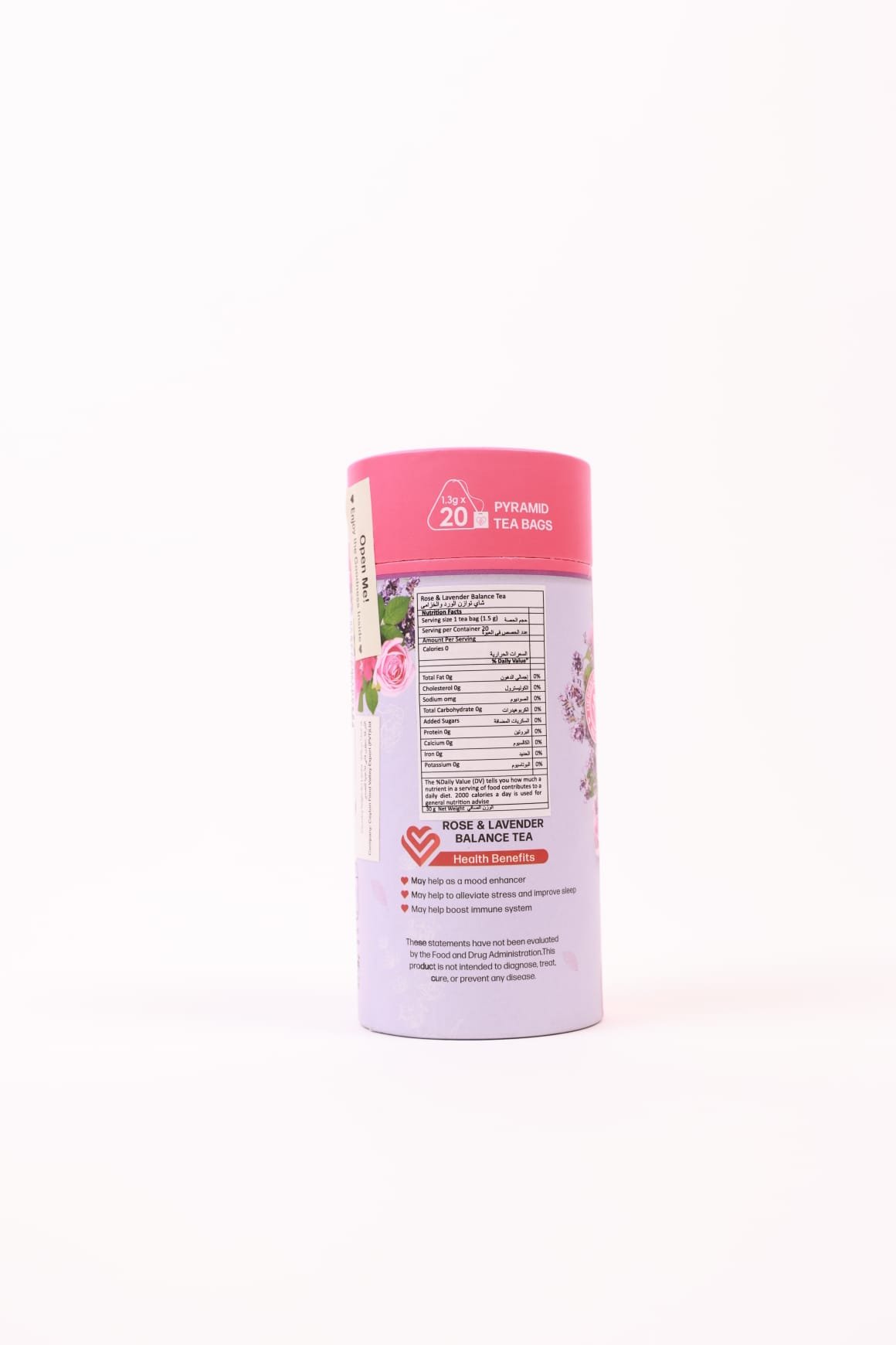 المكونات: أوراق الشاي الفاخرة، براعم الورد، وأزهار اللافندر.